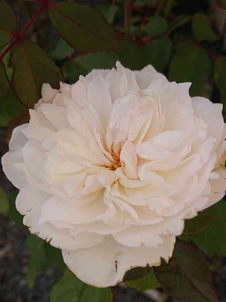 白からアイボリーの波状弁で、低温気には縁にピンクがのる時も。ひらひらとした優しい花弁を、クルクルと舞うように展開する可愛らしくも優雅なバラ。中輪の花が房咲きになり、ティの香りを漂わせます。四季咲き性で真夏も美しく咲き、樹勢が強く、耐病性も強い木立樹形のバラ。より葉を美しく保ちたい場合は2週間に1度の薬剤散布を。細枝にも咲くので冬剪定で株元の細枝を残せば、株全体にふわりと花をつけます。名前は「白鳥の湖」などクラシックバレエに使われる張りのあるスカート状の舞台衣装から。
