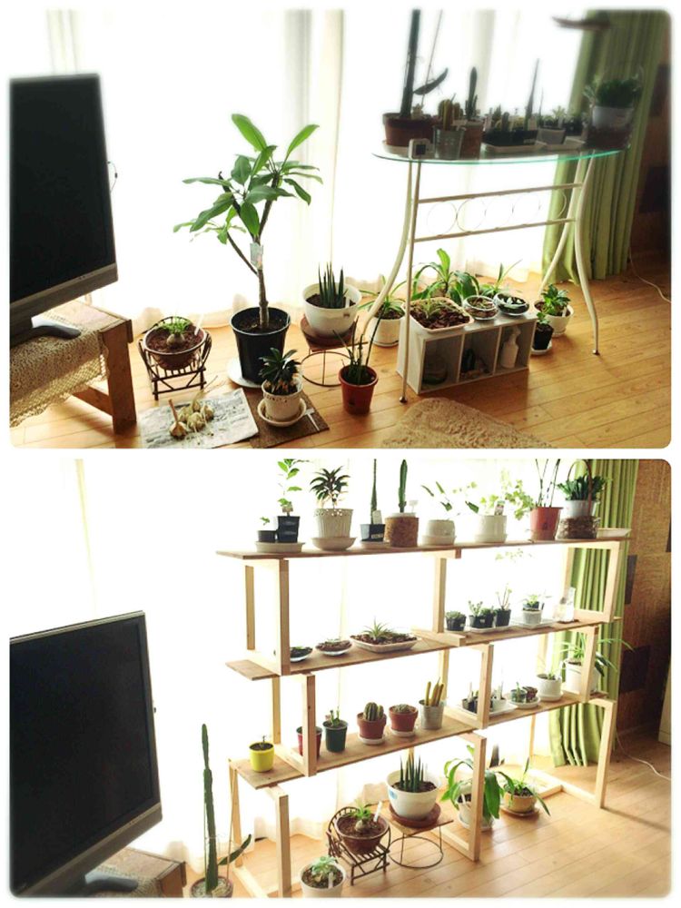 窓辺の置き場所がなくなってきたのと冬を越す準備を兼ねて簡易棚を作りました😅