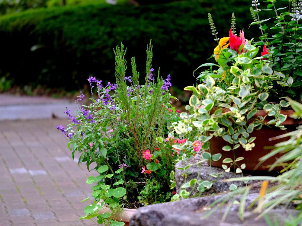 寄せ植えがお出迎えします。