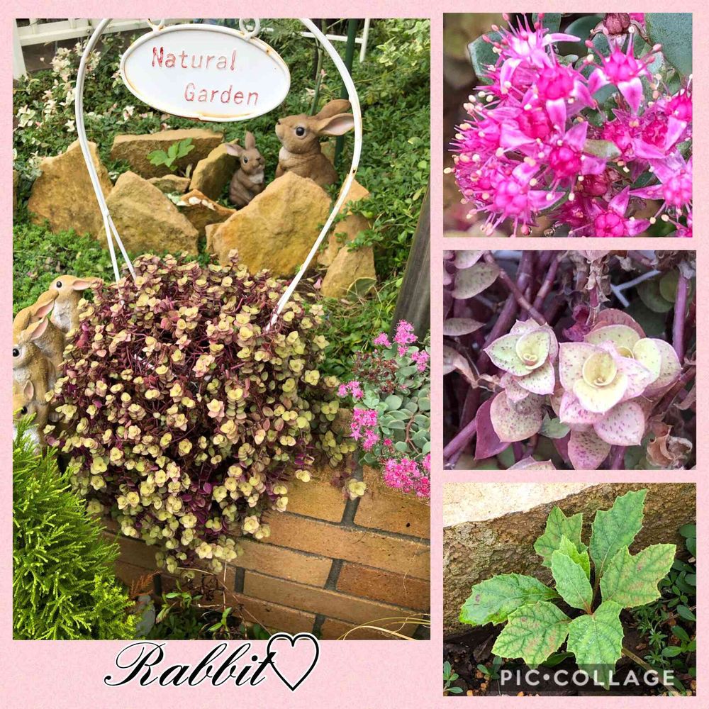 はい❣️🐰の横にいるのが、大好きな柏葉あじさいの挿し木です♬*.◦❣️