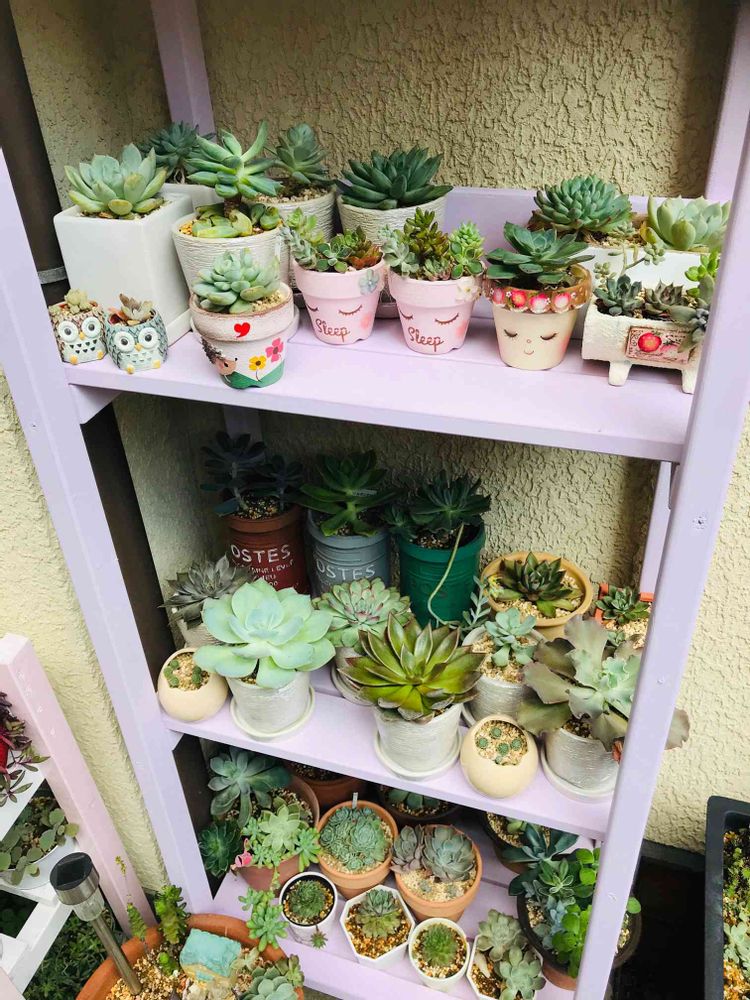 多肉棚 本当はホワイトにしようと思ってホームセンターに行ったらまさかの薄いパープルがあったので🥰