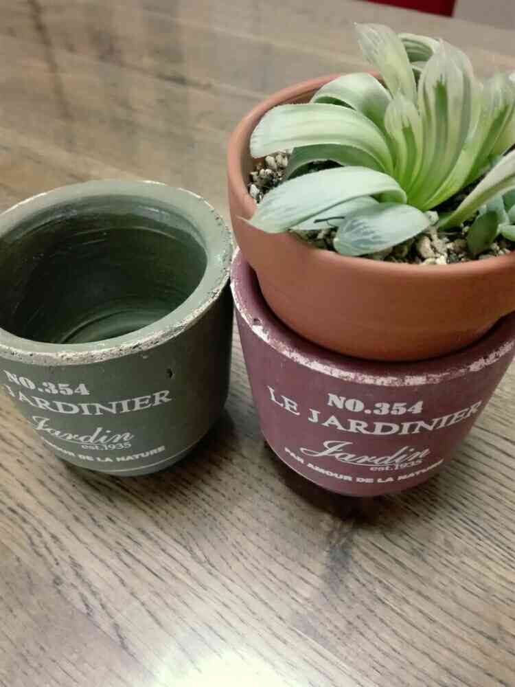 近所のダイソーでそこでは見たことのない鉢(穴がないからカバー?)を入手。