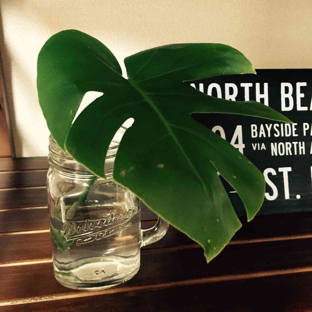 モンステラのバランス悪かった葉っぱ一枚を切って、水さし🌿