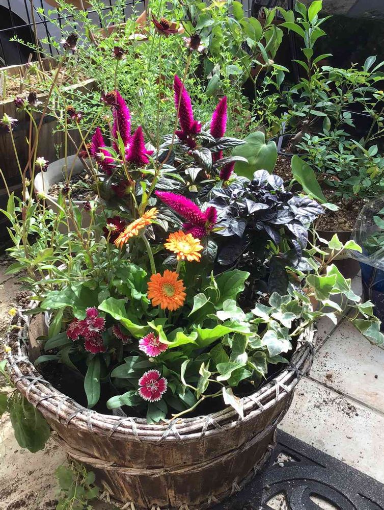 母の希望で今年の秋の寄せ植えはハロウィンカラーで👻