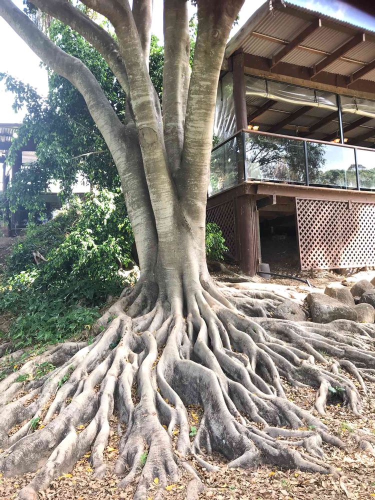 根がかっこいい⭐️いつかとなりのレストランが根に押されて傾きそう。