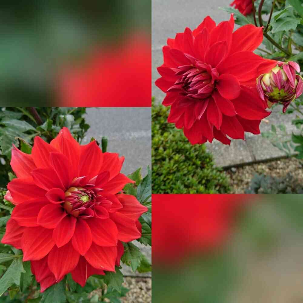 ウチにはダリア植えてないんですが、この🌼歩道植え込みに植えられたものは、真っ赤で大きかったです🌼*・