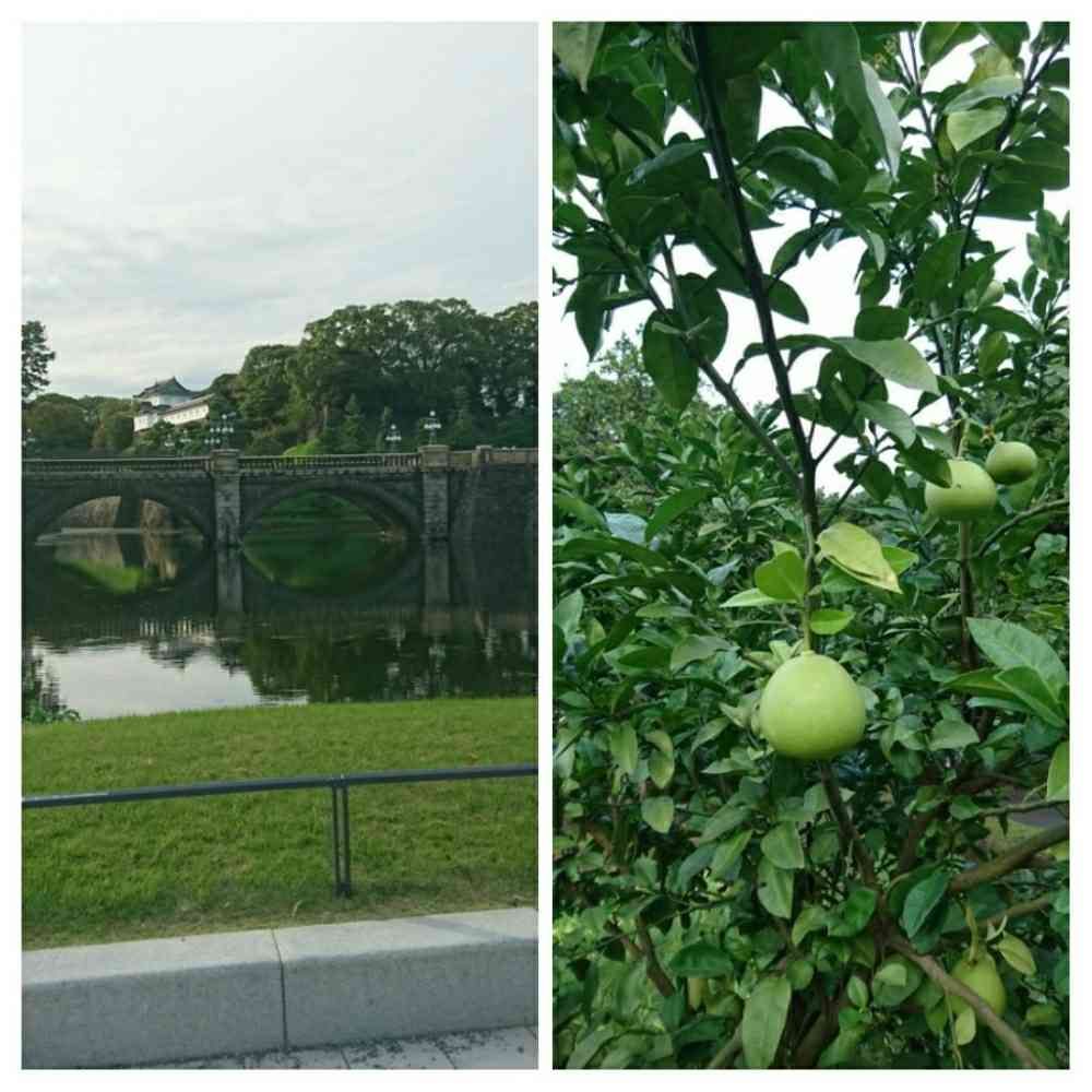 ガーデニングショーから皇居に移り。荷物検査を済ませて、皇居東御苑えと果樹園もあり柿や写真のエガミブンタン。ミカン科が有りました。