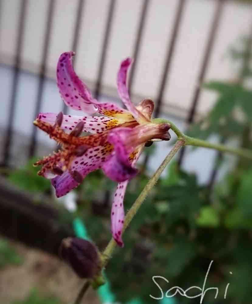 庭の「ホトトギス」が雨粒を纏って咲いていました✨✨✨
