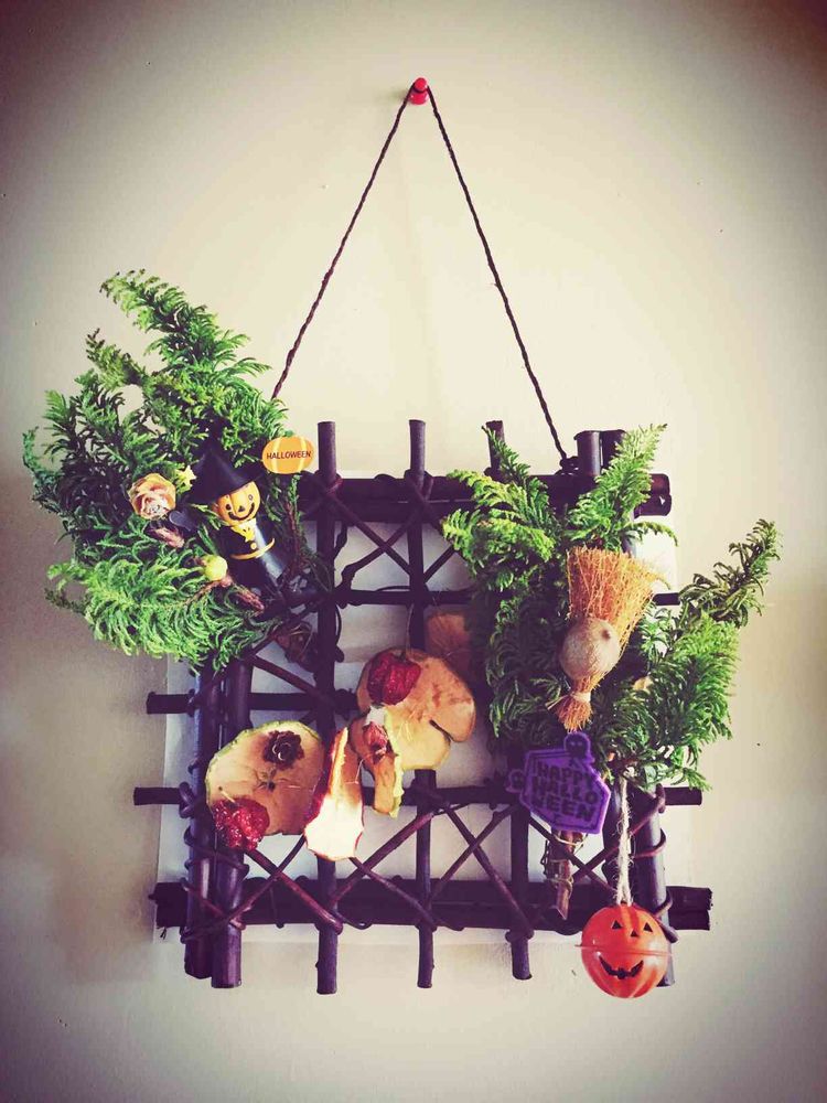 ハロウィンの壁飾りを作りました、ほどんと100均で揃ってた物です。楽しい〜