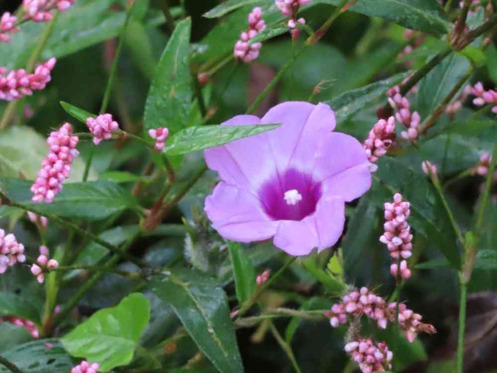 イモネノホシアサガオがイヌタデと一緒に微笑んでいました。