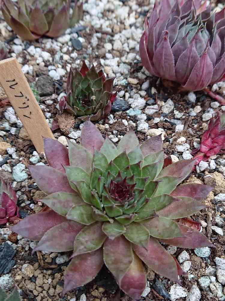 先日植え替えたセンペルビウムたちも段々と色付いてきました。