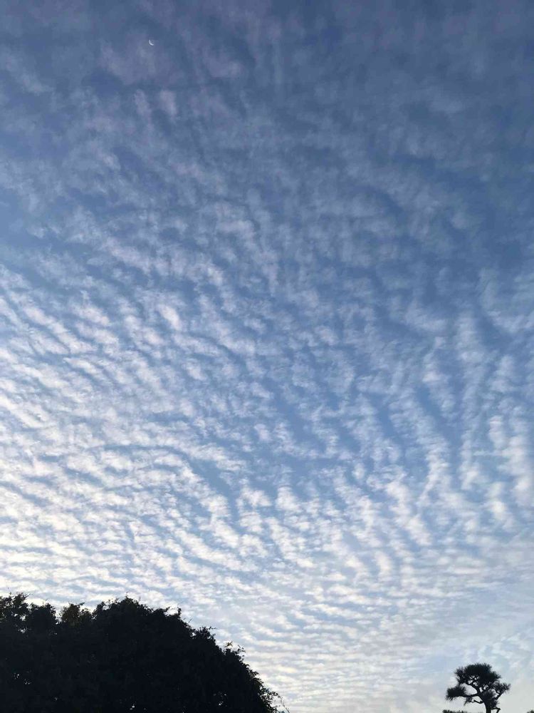 鰯雲、鱗雲、同じでしょうか。秋らしい空ですよね。雲の無かった日の出前との変化にも驚きでした。😊😊😊