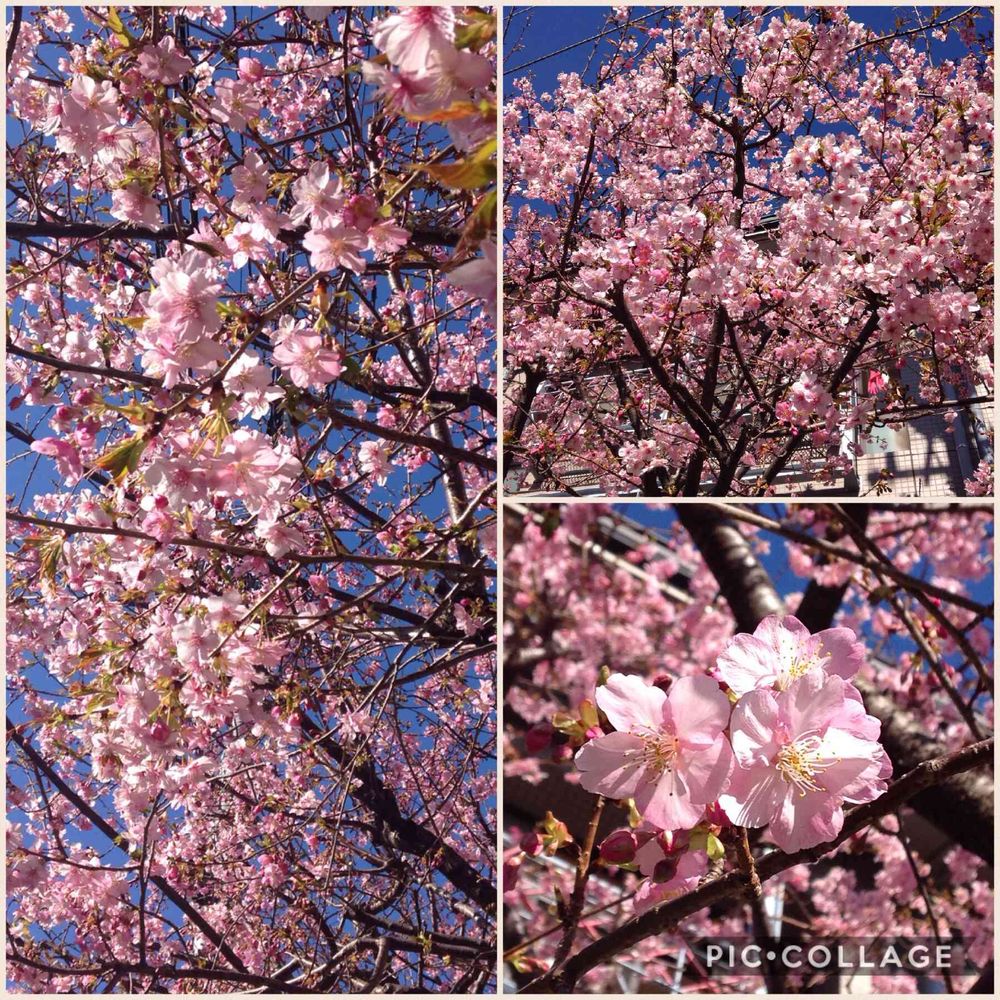 近所の河津桜が去年より3週間ほど早く、ほぼ満開となりました。