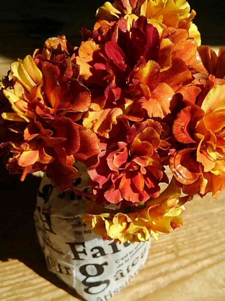 台風でぶっ倒れたからカットした!マリーゴールドのあのド黄色とドオレンジ色が好きじゃなかったんだけど4分間のドラマでアフリカンマリーゴールドのブーケが可愛すぎて、来年は育てるぅ👍
