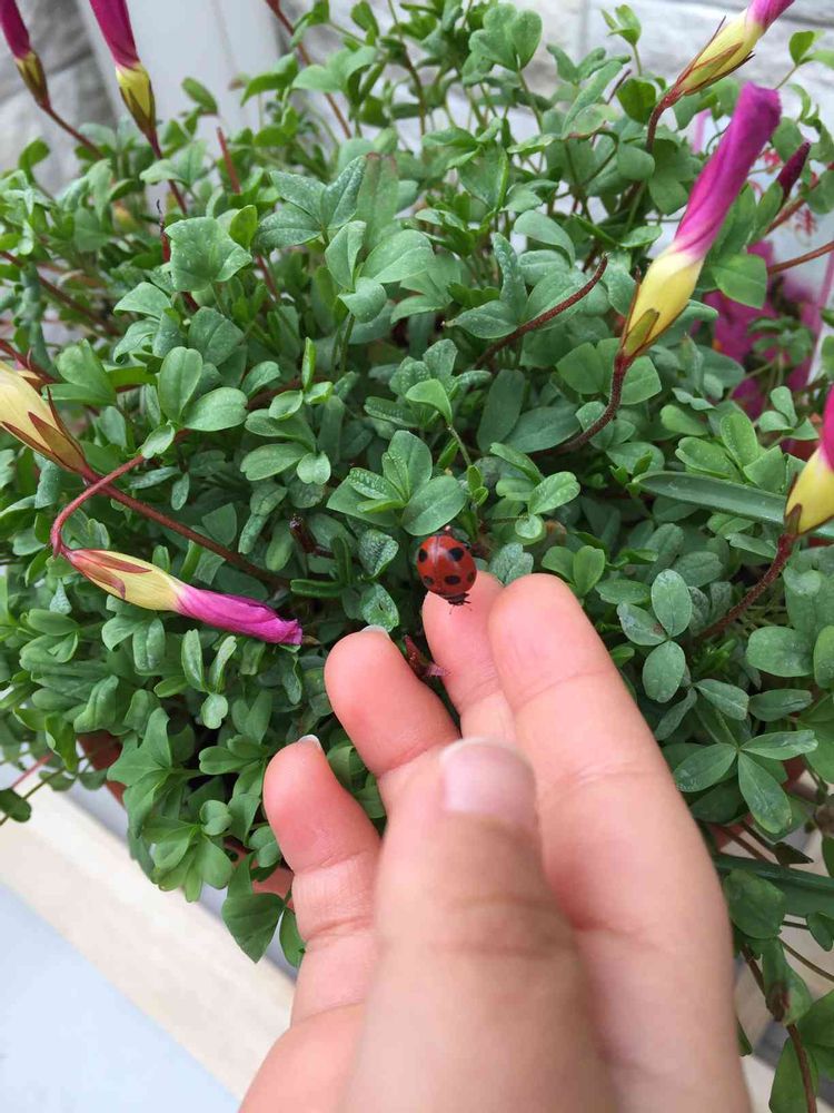 バルコニー/ベランダ,オキザリス 桃の輝き,テントウムシの投稿画像