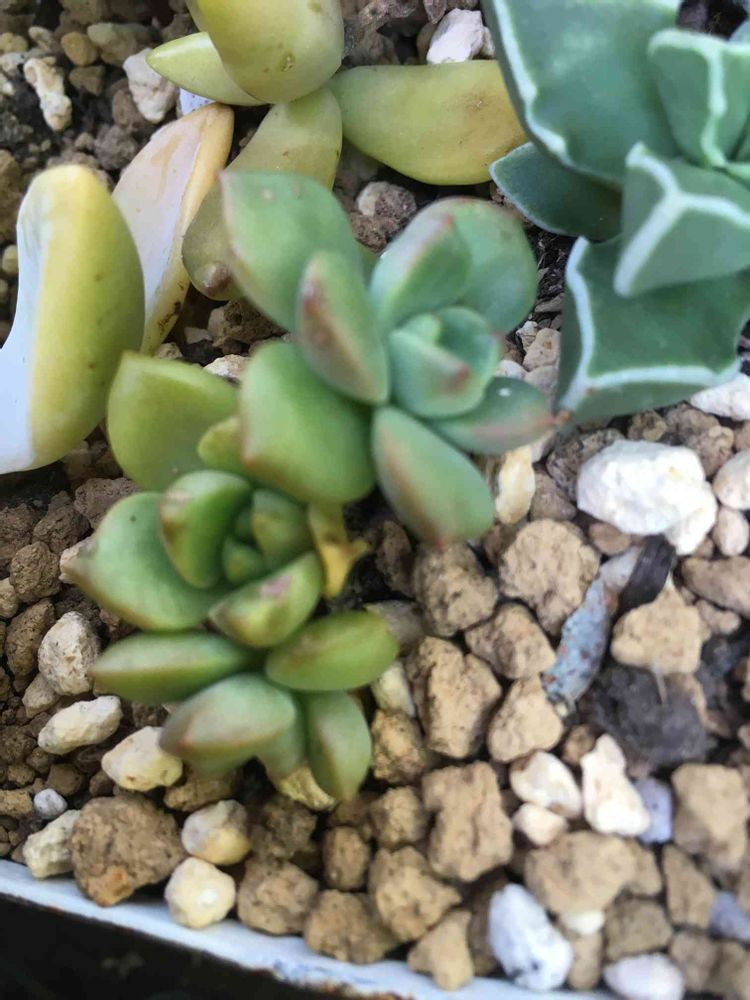 2018.11 キャンドゥで購入のマッコスのはず… 寄植えでかわいそうな形になっちゃいましたが、株は増えてますね。 もう少し広い寄植えに移動しました。