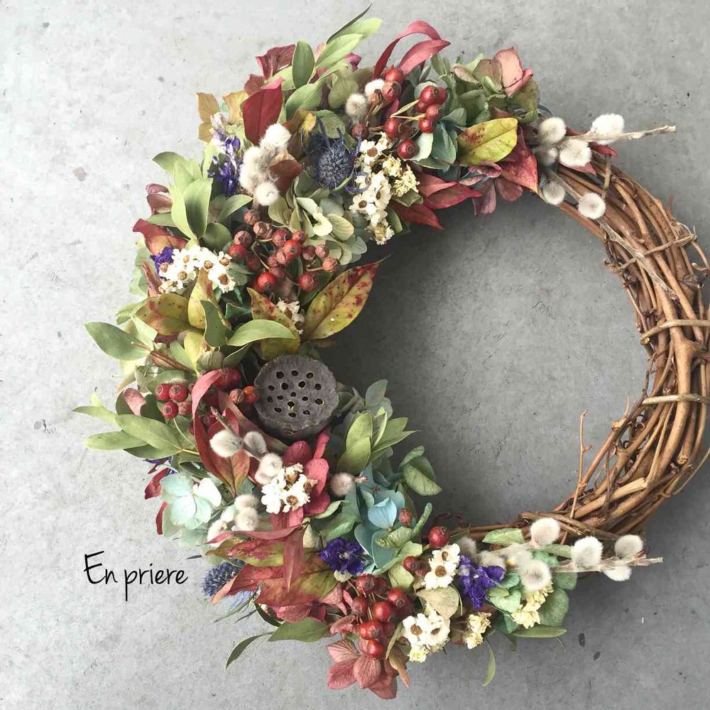 ドライフラワーや季節のお花を使って小さなリース屋さんをしています。