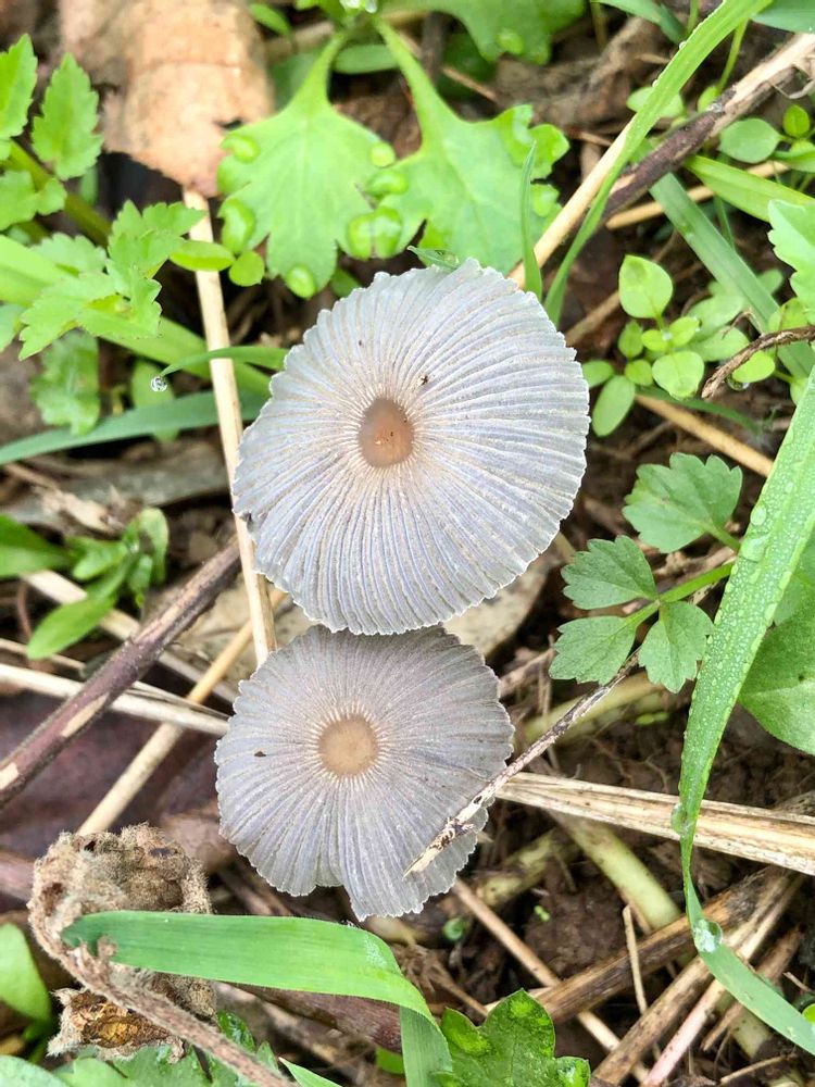 草刈した跡に、半透明のクラゲのようなキノコ類が沢山生えてきました。