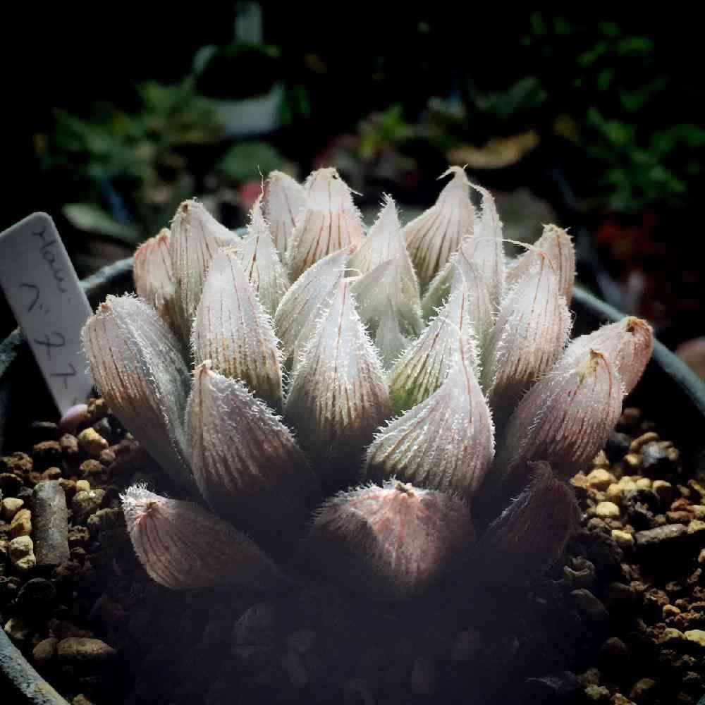 夜の蛍光灯下のハオルチアベヌスタ