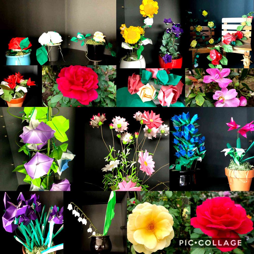 風薫る小さなバラ園 薫田工務店さんに飾ってあった折り紙のお花.*✿の色々