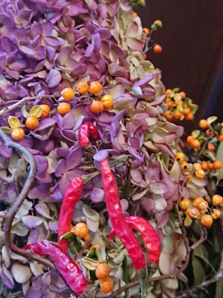 蔓ウメモドキと赤トウガラシも一緒にお買いあげ~~😉