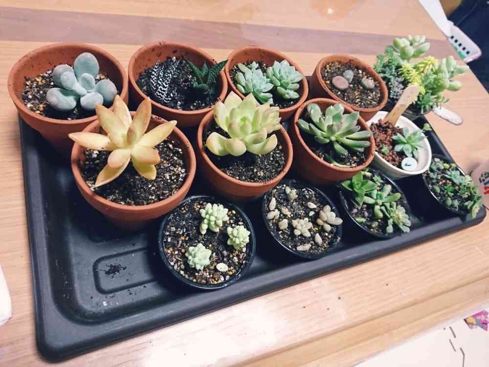 この間多肉とみどりのマルシェでお迎えした子達を1号鉢から3号鉢と適当な器に入れかえ。