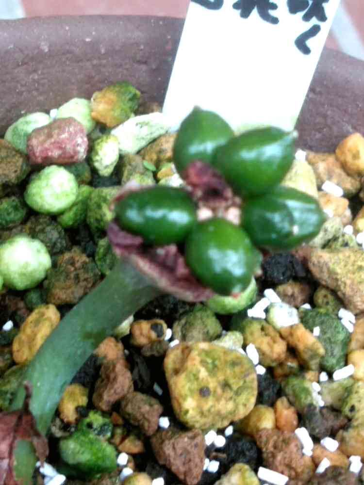ヒメと名がつくので小さいけど5本咲いた内の一本だけに実が着きました。この種からどの位芽が出るのか楽しみです。