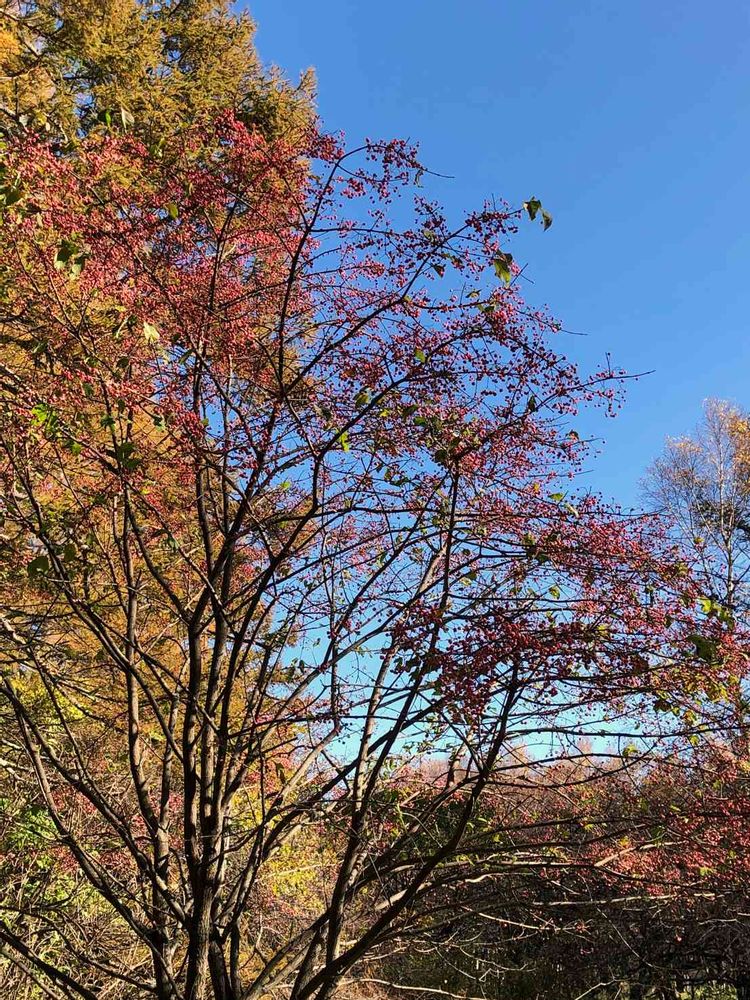 葉っぱが殆ど落葉して🍂ピンク色の可愛い実がたくさん💕