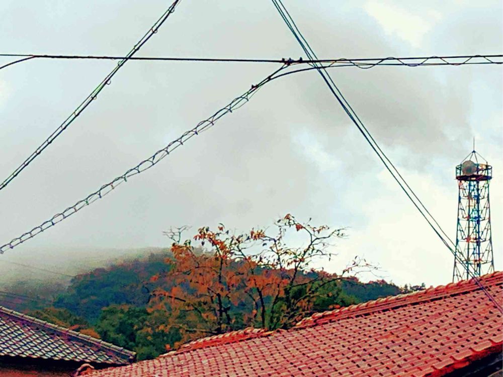 屋根、山、電線、雨雲が混じり絡み合う日本のありふれた風景の一コマになぜか安心してしまいました。生活感が出ているからでしょうか。日本人だからでしょうか。日々一歩一歩ですね☺️