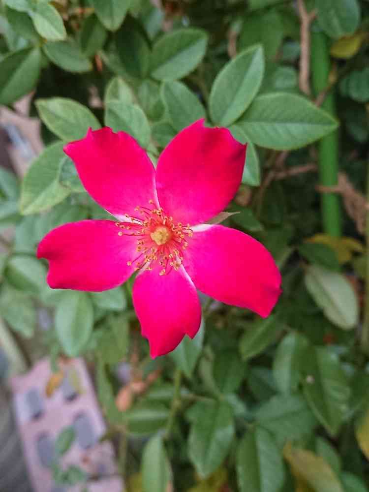 つるバラが咲きました。秋だからか育て方かこの一輪だけ。新芽は伸びてるから春を楽しみにしよう。