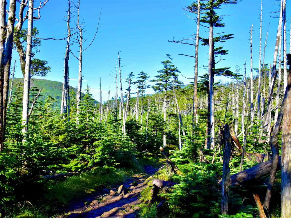 苔道を抜けると、立ち枯れしたシラビソ林になります。