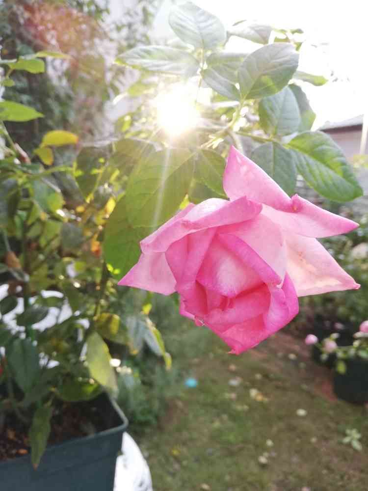 同じく新苗を買ってきた京成作出の杏奈は黒星病だらけなのに、このバラは全然病気が出ないです。