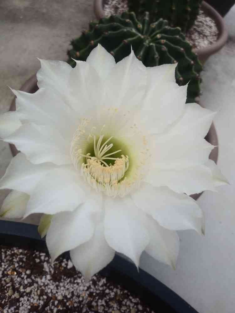 サボテン白花短毛丸が、咲いた〰️!真っ白で、おっきい花が、私のお気に入りです(*^^*)