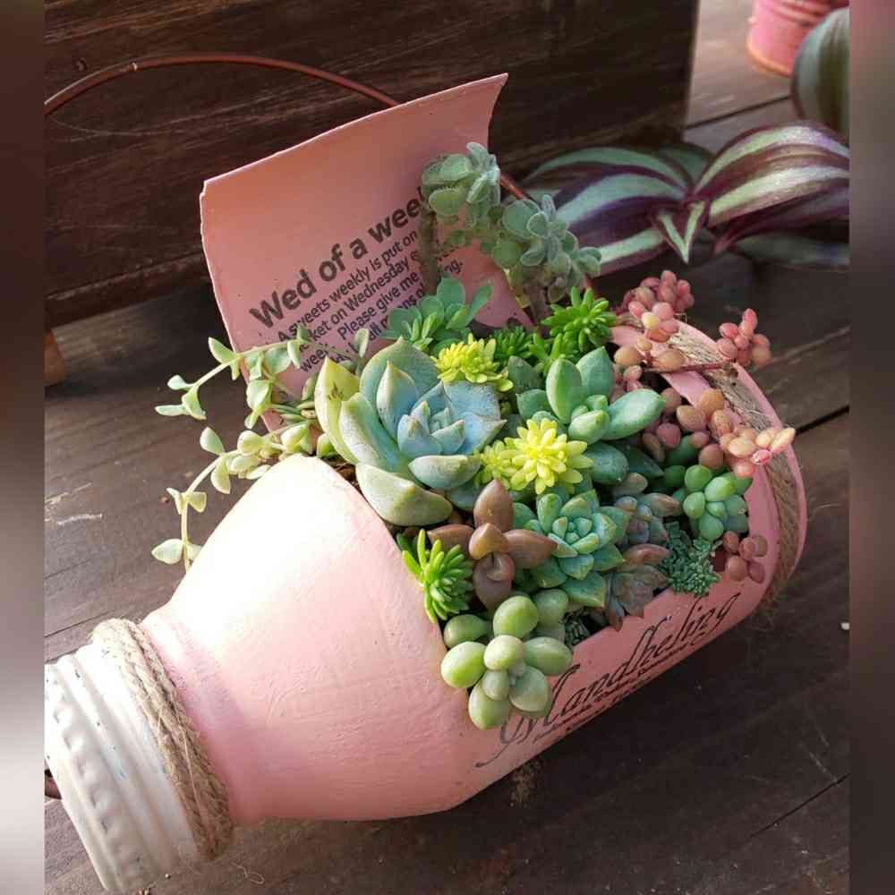 ピンクのリメ缶可愛いぃ~💗💗💗👌プチな多肉🌱もリメ缶にぴったり(♡ºัºั♡)💕