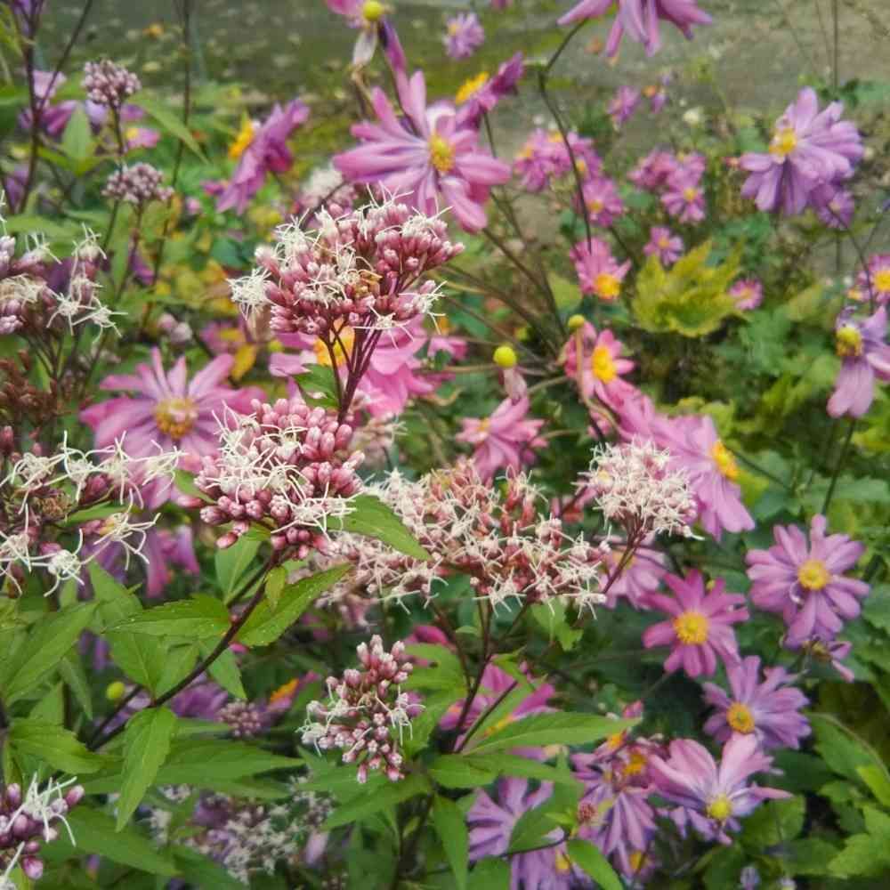 ピンクの濃いピンクシュウメイギクと、淡いピンクのフジバカマのコンビは毎年の楽しみです😊