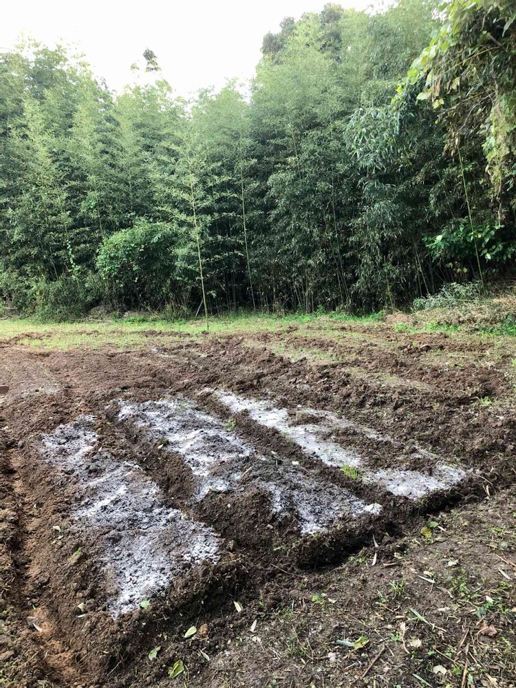 竹の根に悪戦苦闘しながらの、慣れない鍬入れで、全身筋肉痛です💦