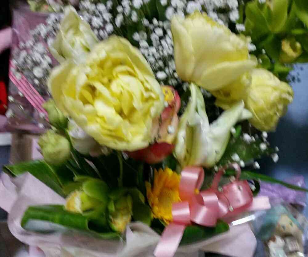 もう一つ,,,, 初めての挑戦,,,,, この前アレンジしてもらった 花が枯れたので 違う花で,,,, このバラの枝 すごく太くてビックリ,,,,,葉っぱも光沢あって綺