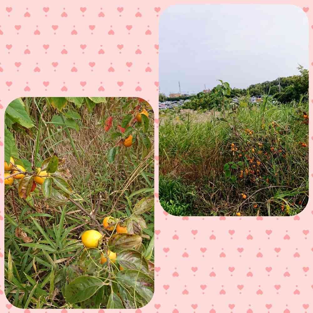 主人の会社の駐車場の近くの雑草の中に柿がなっていました!(⚆.̮⚆)!!