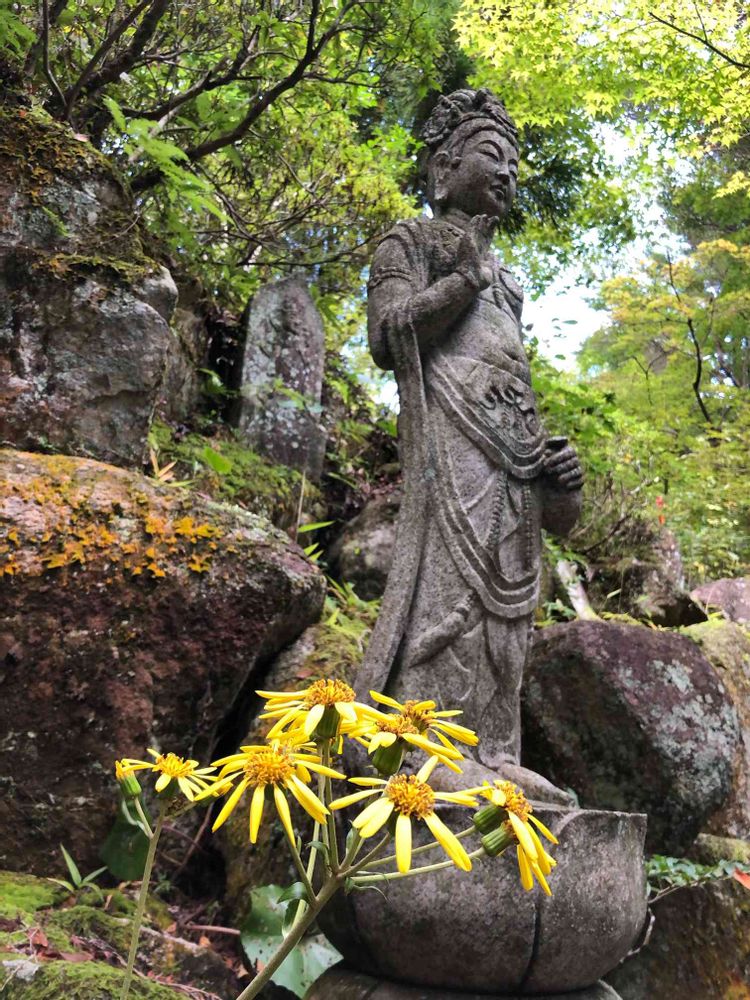 観音様のそばで咲くツワブキが素敵すぎて✨✨