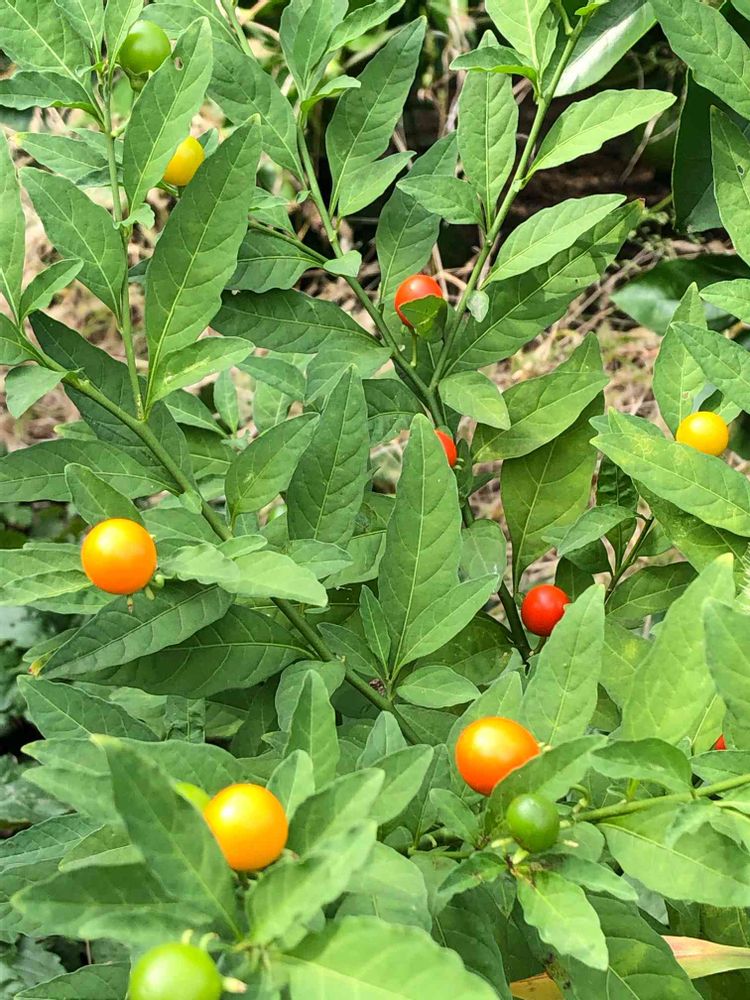 畑に生えていたこの赤や黄色の実は何という花なんだろう?