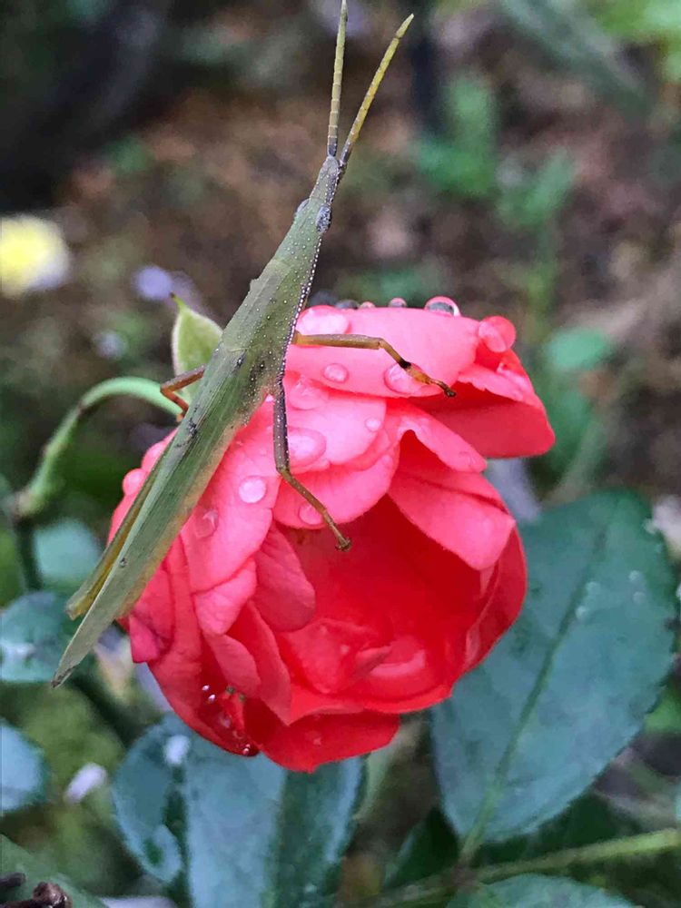 主役は、薔薇ではなくバッタさん😁