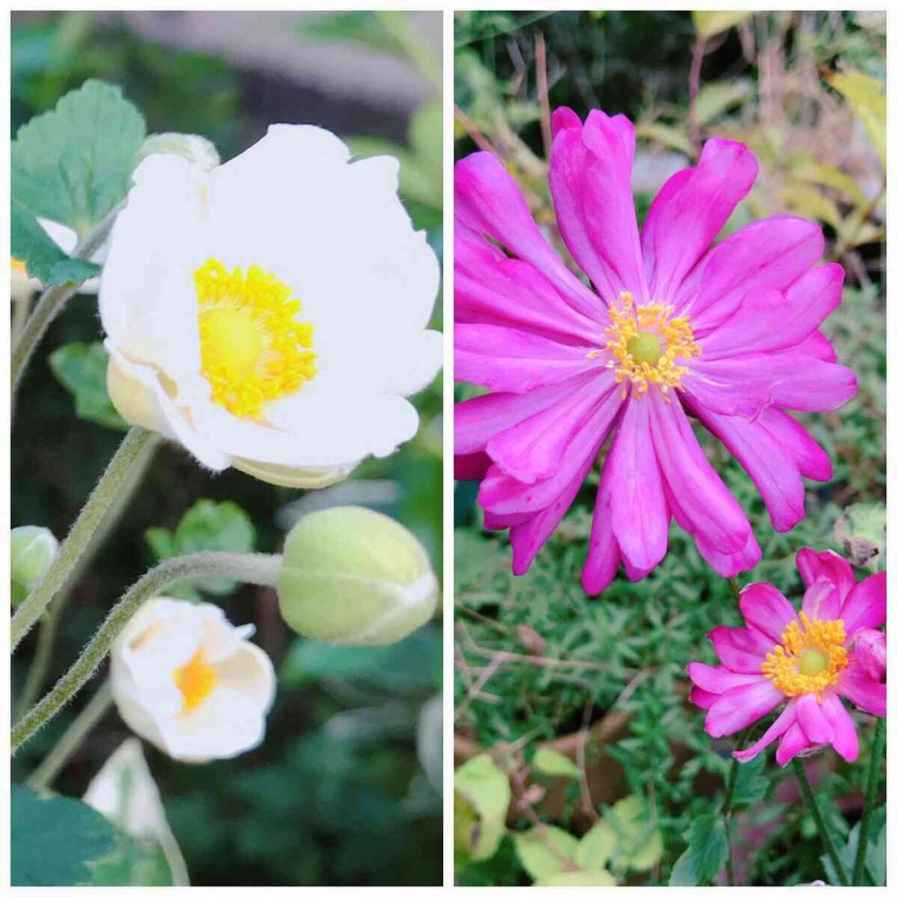 庭の秋明菊 白とピンクの八重咲き🌸