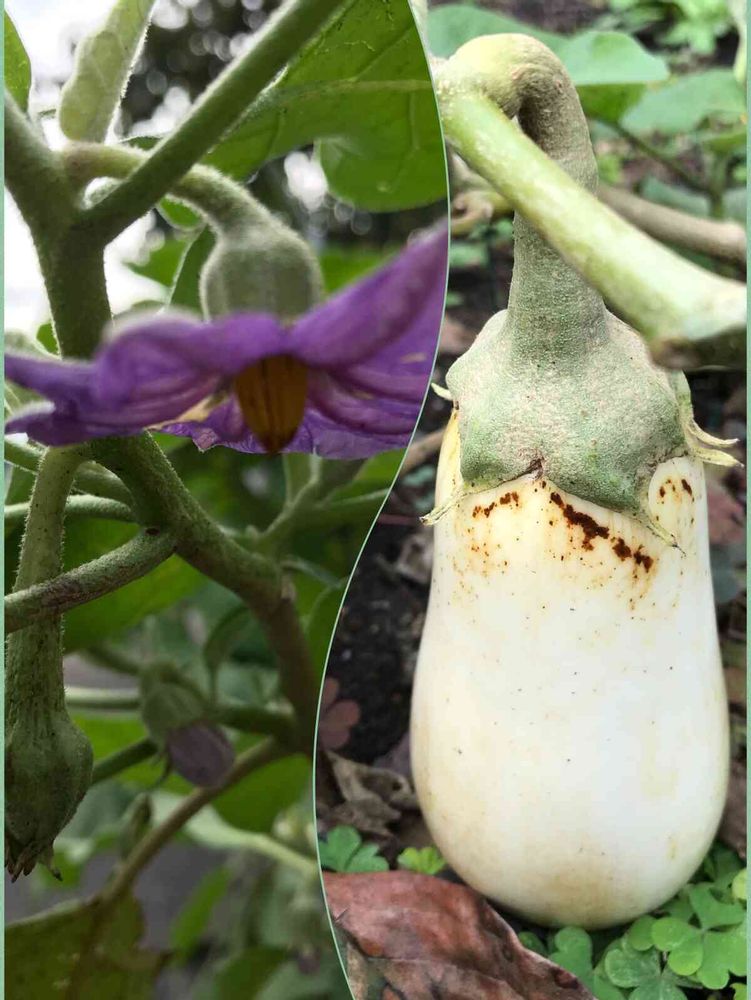白いナスもお花はムラサキ色です😓
