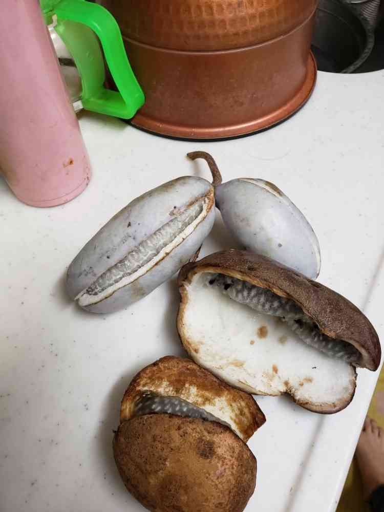 [@id:1082750] 味はどれもアケビ?w甘さが違うだけの違いデスネ~。因みに紫➡️土色➡️白の順で甘くなってました🎵