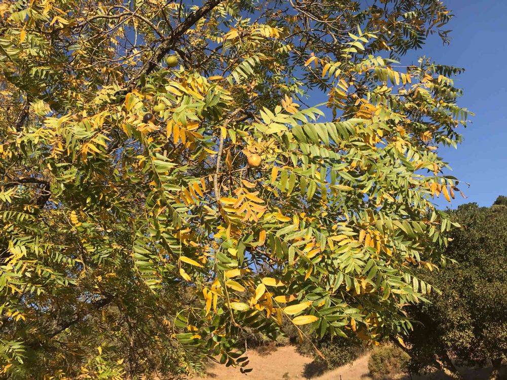 Rancho Canada del Oro Open Space の駐車場の近くのクルミの木が実をつけていました。Northern California walnut というカリフォルニア原産のクルミ。学名 Juglans hindsii。