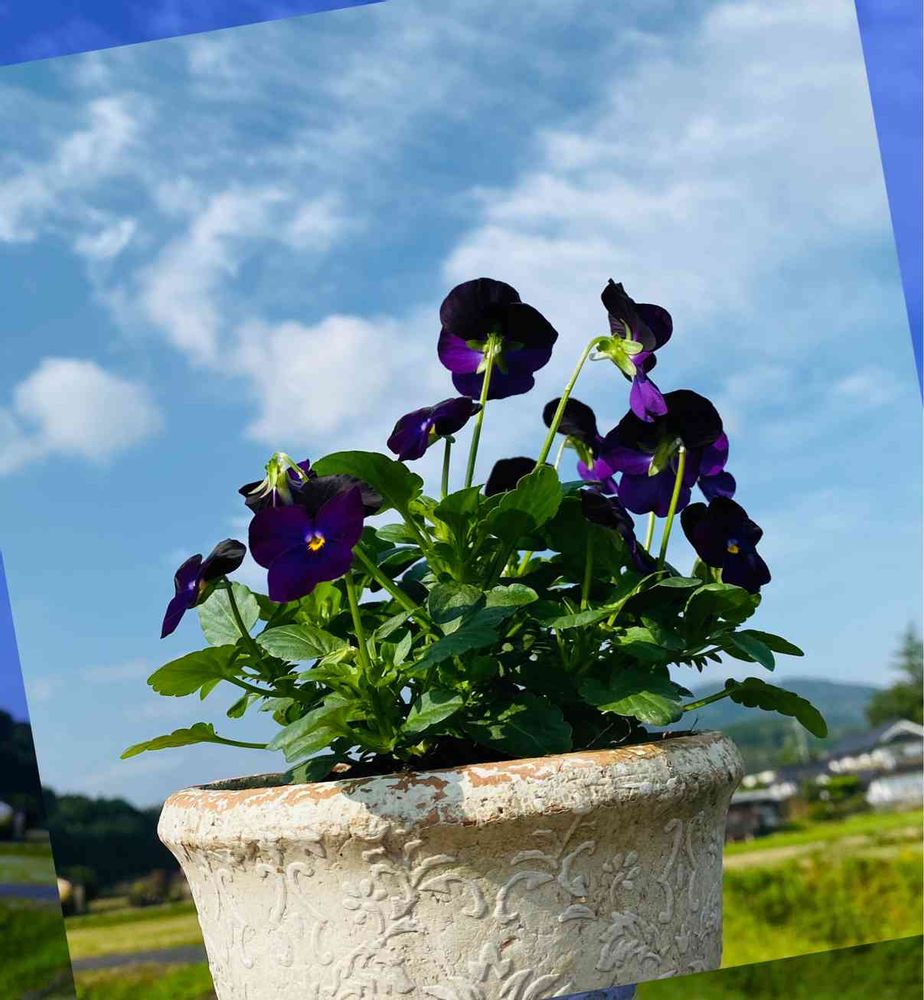 イイネありがとう😊秋空とビオラが〜キレイ🙌