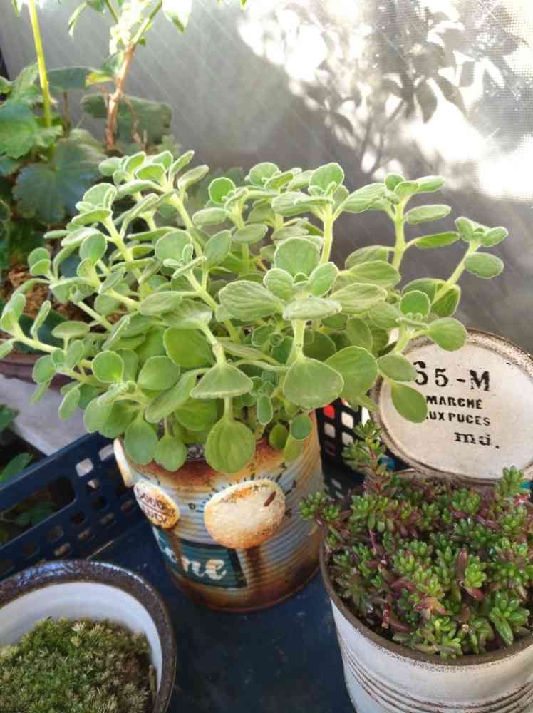 GS マルシェで購入したアロマティカスとポーチュラカ ピンキー、リメ缶に植えました💕