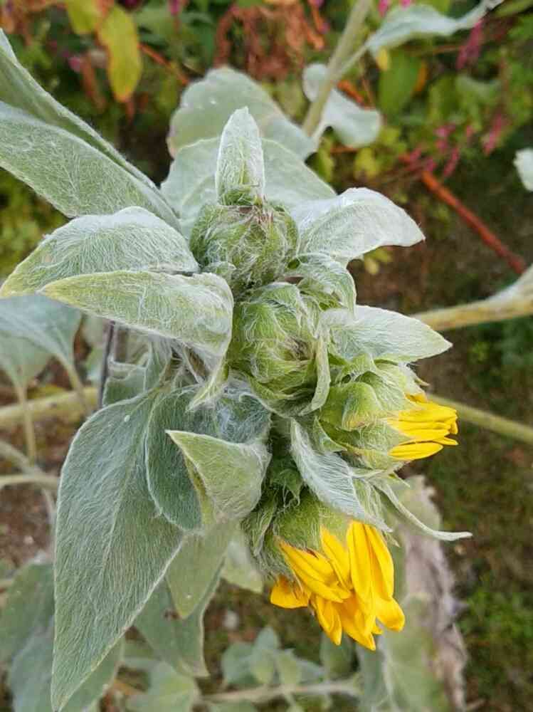 夏の花ヒマワリ、このヒマワリまだツボミも有り咲くき満々みたいだ(10/27)秋から冬の端境期のはずだが?、やはり天候おかしいのか?