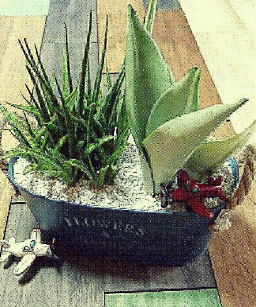 うちにあるサンセベリアを1コの鉢に集めました。分かりにくいけど、3種類あります🌱