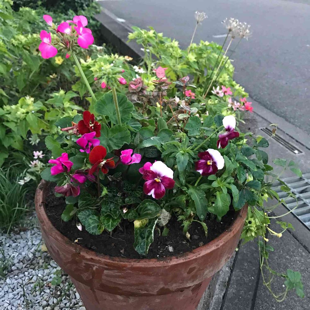 ガーデンシクラメンを入れて作りたかったのと、ゼラニウムの花の色が可愛いのが気に入りました。ビオラは98円の40ぱーせんと引きでした👍
